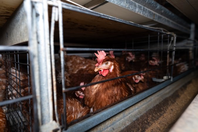 Dead hens in bin